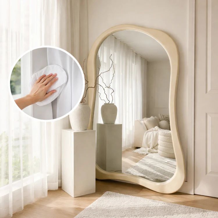 Breng het iconische design van de meest elegante interieurs rechtstreeks in uw huis. Deze staande spiegel met modern gebogen design is veel meer dan zomaar een accessoire: het is een pronkstuk dat elke kamer direct transformeert door diepte, helderheid en verfijning te brengen.